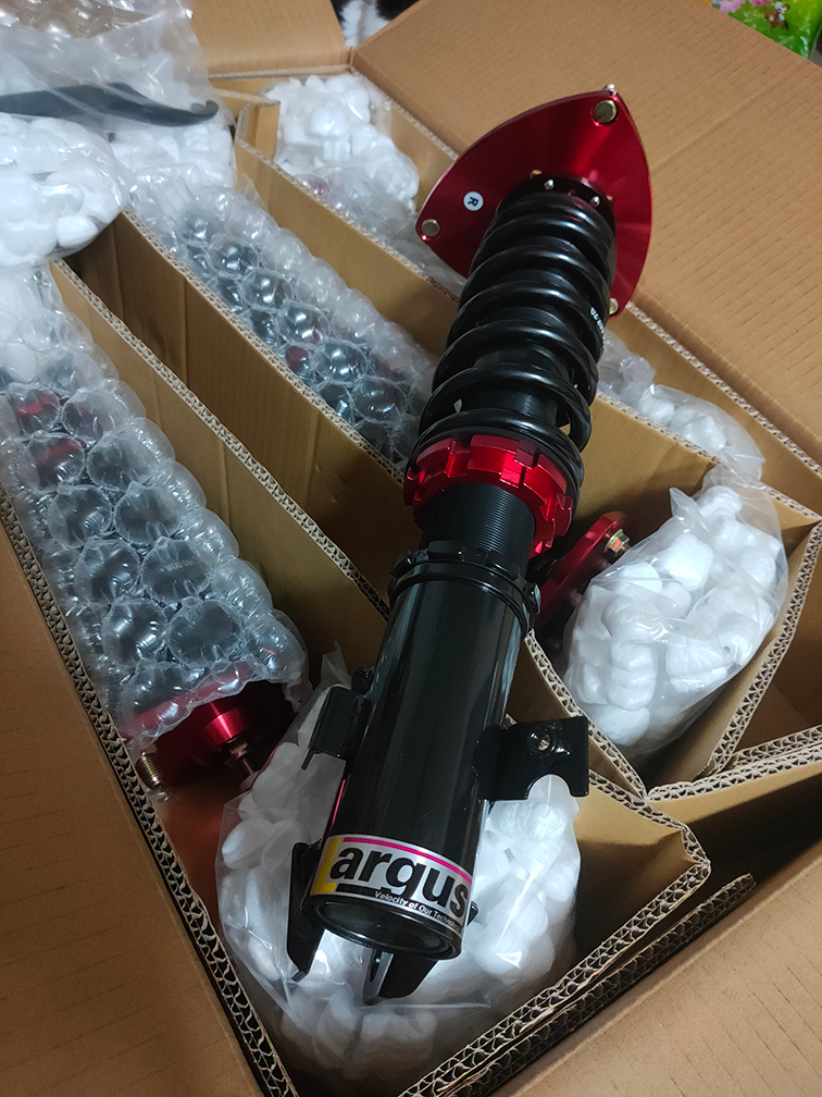 吊るしの状態ではあまり下がらなかったのでバネを変更(F 6k 200mm→10k 140mm+ラルグス製ヘルパー R 8k 180mm→12k 120mm+ヘルパー)しました。まだ下がる余地はありそうです。