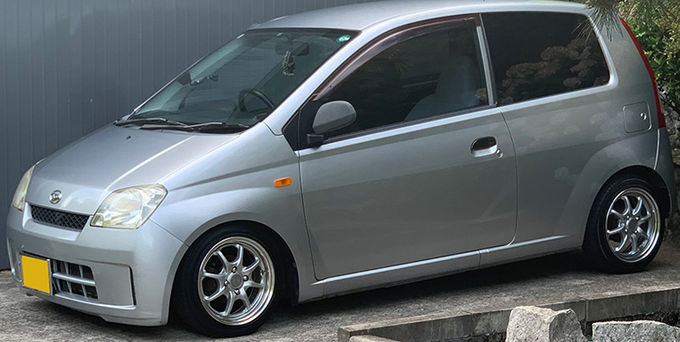 通勤兼遊び車で2ドアのミラバンを購入。とりあえずレカロシート、昭和臭い水中花シフトノブ、40年前の社外ハンドル、エンケイのJspeedを装着。