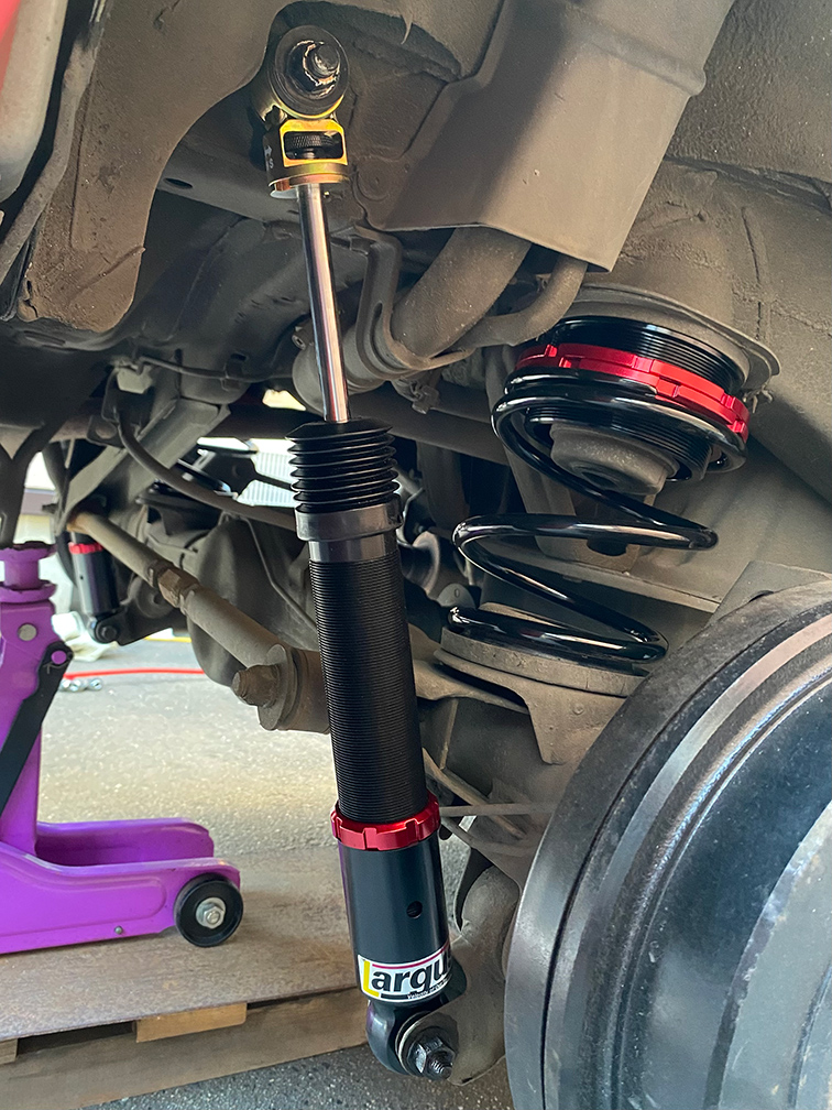 ネジや溶接など高い品質の上、樹脂のスプリングシートで防音したり、上のナックル取り付け穴が長穴になっていたりと小技も効いている。